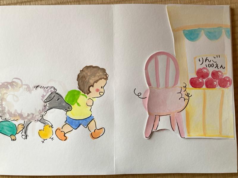 このしかけ絵本、数年前に近所の幼稚園に読み聞かせのため急ぎで作ったのですが、読み聞かせ後しまったままになっていました。