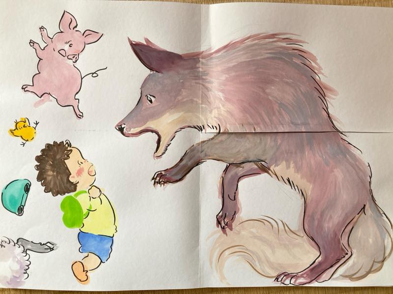 今回は久しぶりに大型の手作りしかけ絵本を持っていきました。
